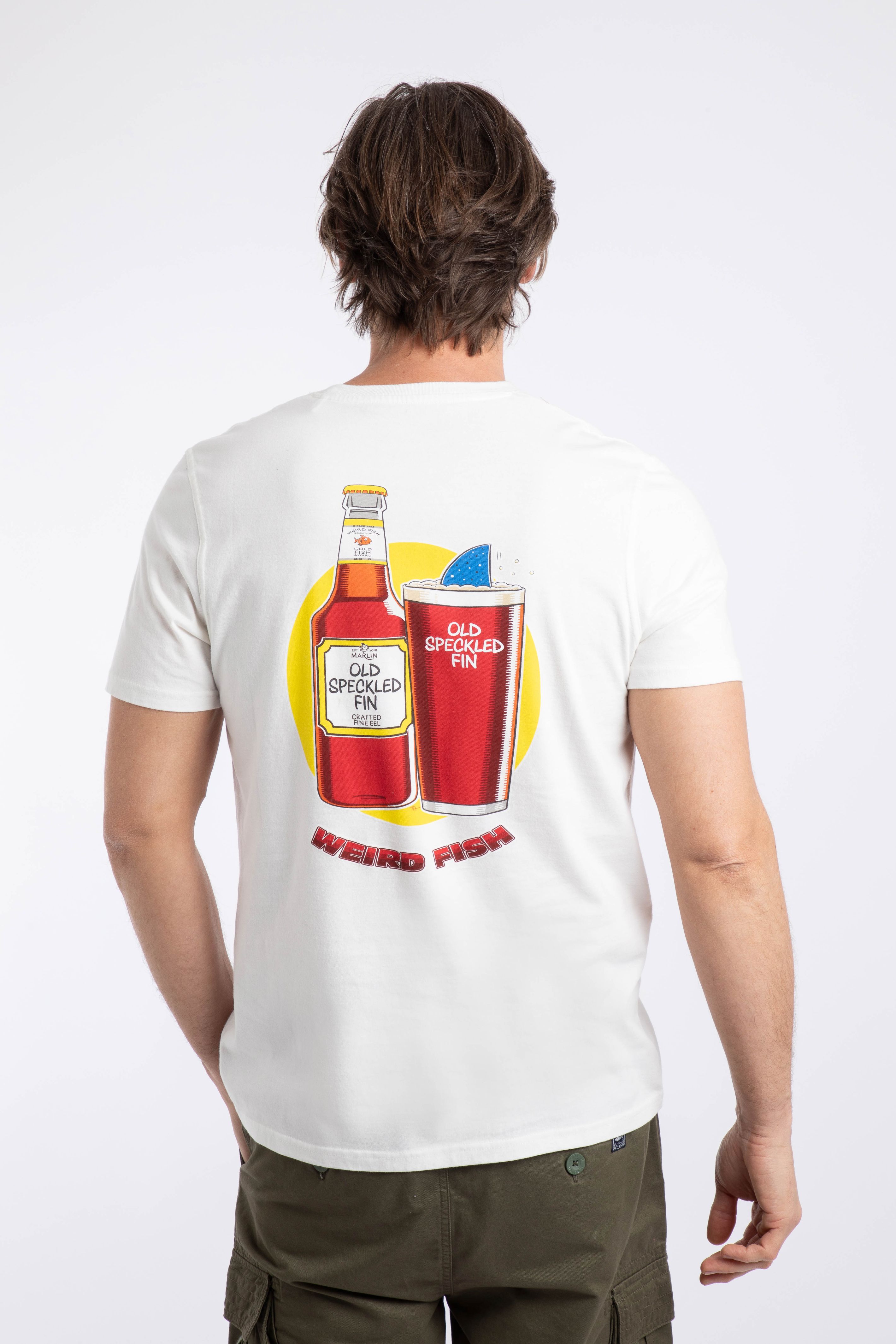 Back by popular demand, a tee design from our archive, the Old Speckled Fin Back Print Artist T-Shirt. We know you guys love a beer related tee, and this one is a classic.