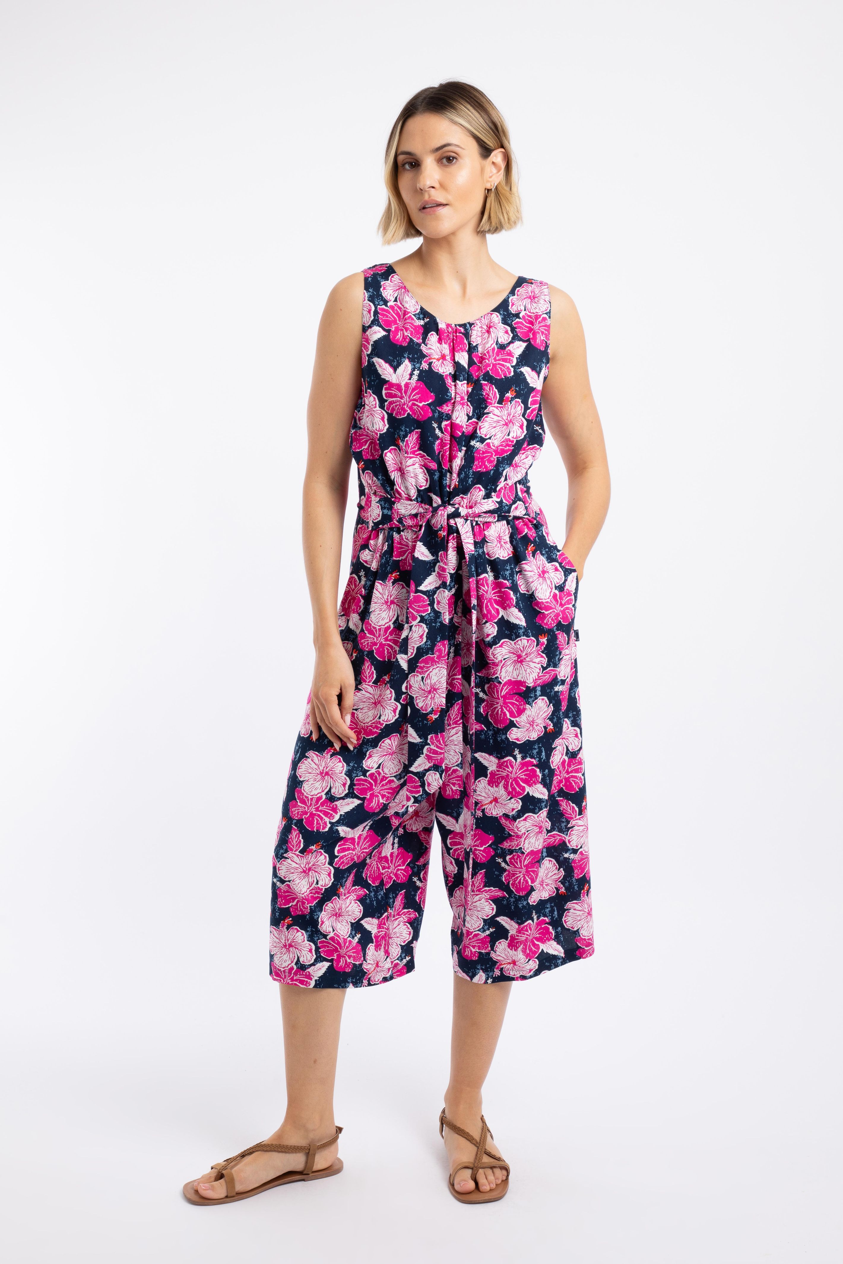 Nalani Printed Viscose Jumpsuit Fuchsia Punch