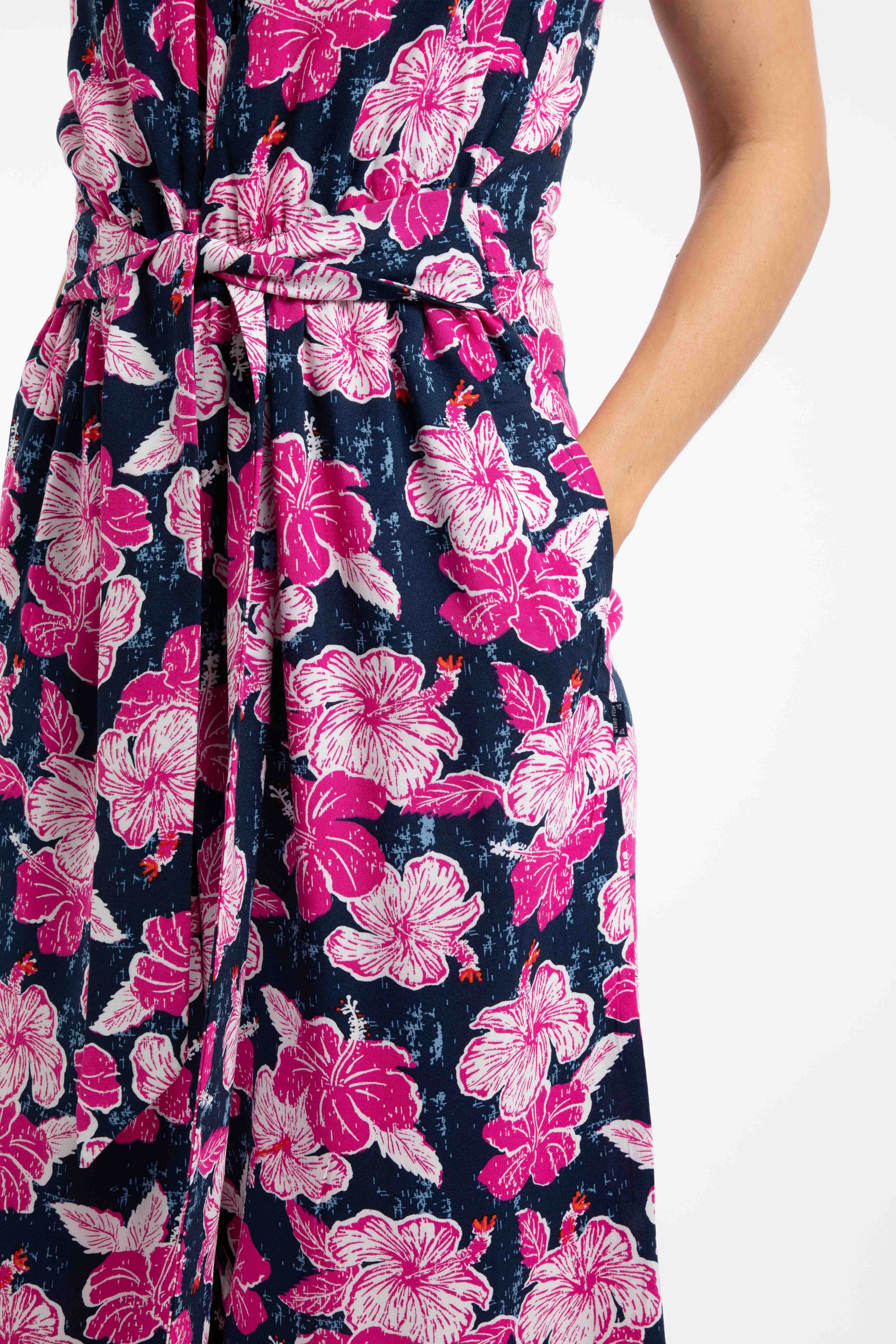Our versatile Nalani Printed Viscose Jumpsuit is the perfect summer piece, thanks to its cool and floaty fabric. Perfect for BBQs and drinks by the coast, the Nalani provides effortless summer style and boasts an exclusive Weird Fish print. Go from day to night with just a shoe change. Pair with trainers or sandals for a more casual look, or dress up for an evening out with heels.